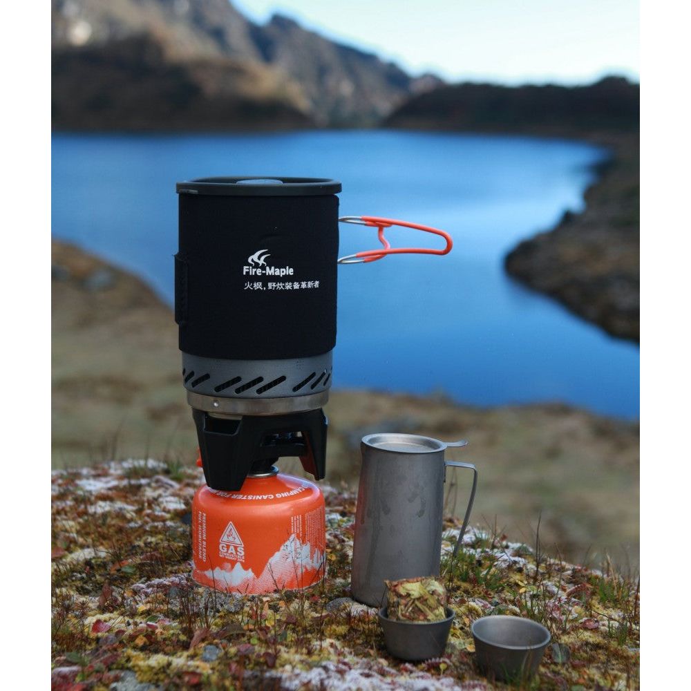 Ühendades 1-liitrise poti ja gaasipõleti ühte integreeritud süsteemi, saate vett keeta 30% kiiremini kui traditsioonilise telkidegaasipõletiga. Vastupidaval anodeeritud alumiiniumist potil on käepide, mis hoiustamise ajal potipoolte vastu sulgub. Poti sees olev veetaseme skaala hõlbustab toiduvalmistamist. Kaas on läbipaistmatu.