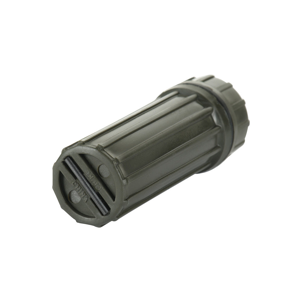 See on valmistatud tugevast, kuid kergest materjalist, mis ujub vees. Kaas ja spetsiaalne kummitihend keerme juures kaitsevad niiskuse eest ning hoiavad tikud kuivad (tikud ei kuulu komplekti). Kaane siseküljel on väike peegel. Konteineri põhjas on väike tulepulk, mis annab piisavalt sädemeid tule süütamiseks ka keerulistes ilmastikuoludes.