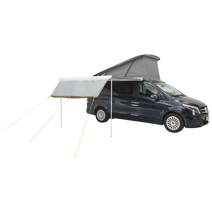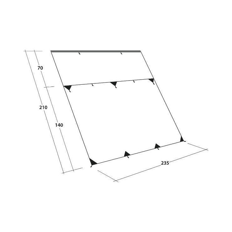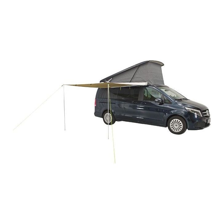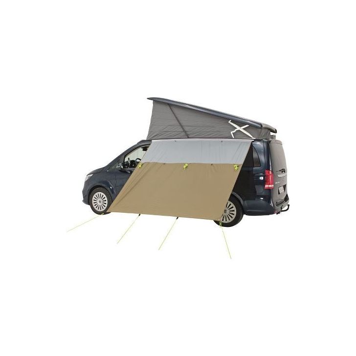 Outwell Hillcrest Tarp libiseb väljarullitava varjualuse servakanalisse või otse sõiduki rööbastele, kui seda kasutatakse külili ilma varustusteta. See kinnitatakse traatliinide ja maakinnitustega. Lisab kiiresti ja lihtsalt täiendavat privaatsust ja kaitset. See muudab praktilise varjualuse kiiresti varju, kaitset ja sisemist privaatsust pakkuvaks eluruumiks, mida kasutatakse uksepoolsel küljel. Teisel küljel kasutatuna pakub see varju, mis on eriti hea kaubikukülmiku puhul, säästes nii tõhusat tööaega. Tugevad aasad pakuvad võimalust pikendada varikatuse kujul vertikaalsete postidega (kaasas) või saab selle osaliselt kokku rullida ja hoobadega kinnitada, kaitstes paigaldust ilmastikumõjude eest. Seda saab kombineerida Fallcrest külgkattega, et kasutada paneeli veelgi suurema varju ja privaatsuse tagamiseks, samuti kaitseks tuule ja vihma eest.