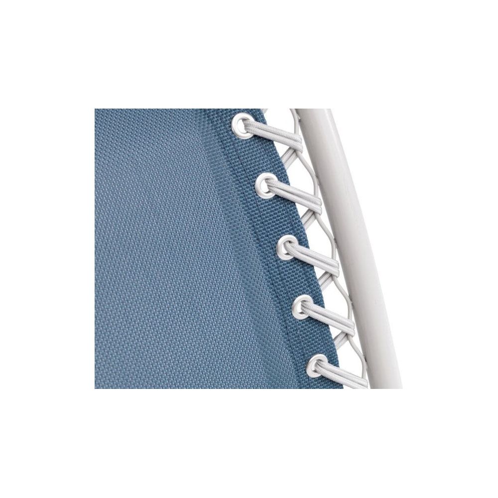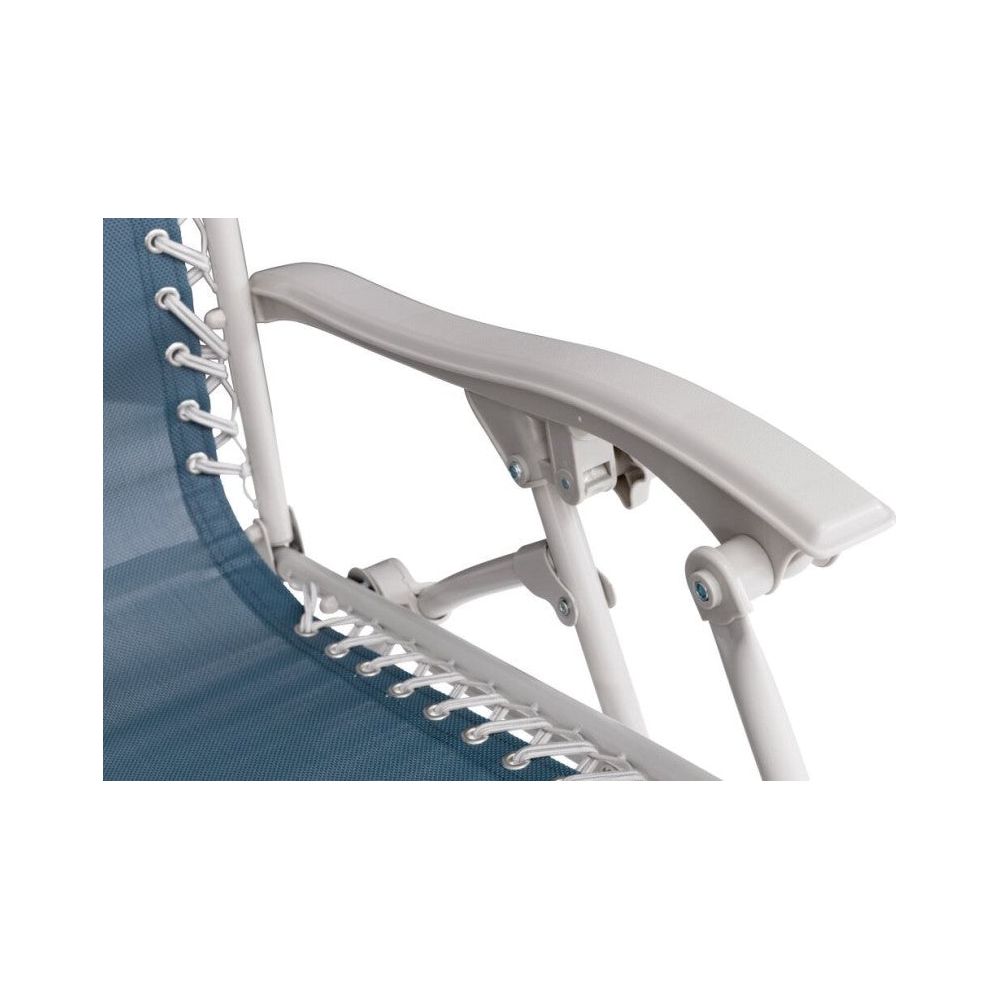Se on tugeva ja vastupidava terasraamiga, millel on kergesti puhastatav Textiline ja integreeritud, eemaldatav vahtpolster kaela toetamiseks. Seda ei pea kokku panema, vaid see avaneb ja klapib sekunditega lukustava liuguriga reguleerimise abil, et muuta toolist tugitooliks.