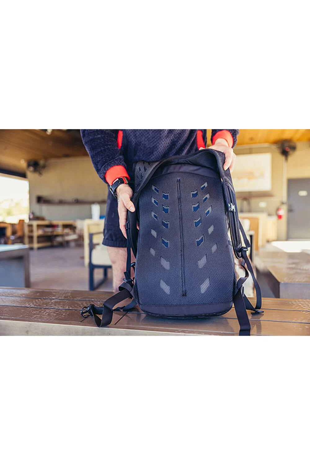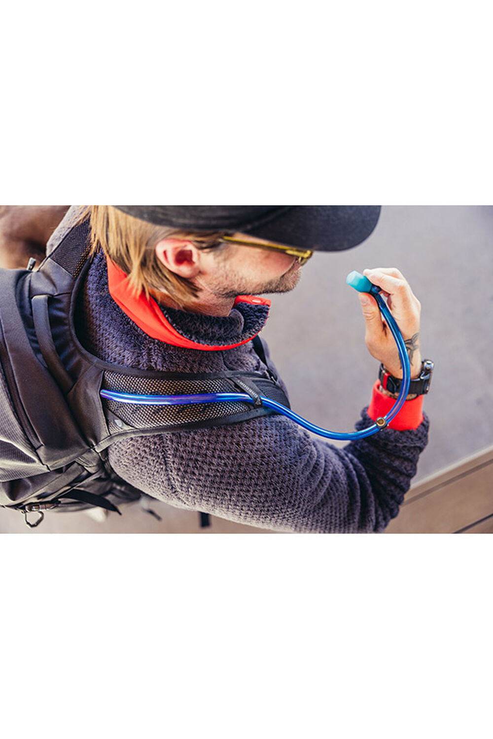 - Polsterētas airmesh plecu siksnas ar vienas rokas krūšu siksnas sprādzi un hidrācijas sistēmas cauruļu vadotnēm