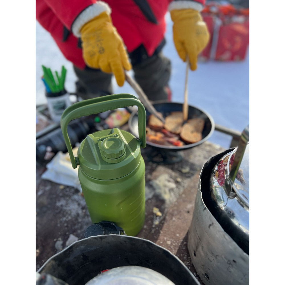 Ideāls kompanjons grupas pasākumos, transportēšanai, uzglabāšanai un jebkurā situācijā, kad nepieciešams lielāks ūdens, kafijas vai tējas tilpums, kas saglabājas karsts vai auksts vairākas stundas. Izturīgais Superjug (2,5 litri) ir izgatavots no īpaši izturīga, augstas kvalitātes 18/8 nerūsējošā tērauda un aprīkots ar divslāņu vakuuma izolāciju, kas ilgāk uztur dzērienu karstu vai aukstu. Plašais atvērums nodrošina ērtu uzpildīšanu un tīrīšanu, savukārt liels izolēts vāks ar ergonomisku, noplūdes drošu twist vāciņu ļauj ērtu dzēriena ielešanu vai dzeršanu. Salokāmais pārnēsāšanas rokturis un neslīdoša roktura virsma nodrošina vieglu transportēšanu – neatkarīgi no tā, kur jūs dodaties. Lieliska alternatīva vairākiem vienreizlietojamiem pudeļu komplektiem.
