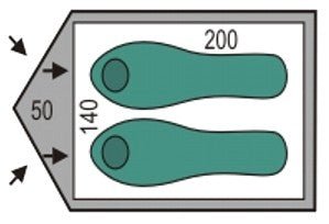 - Išorinės palapinės medžiaga: poliesteris, PU 2500 mm