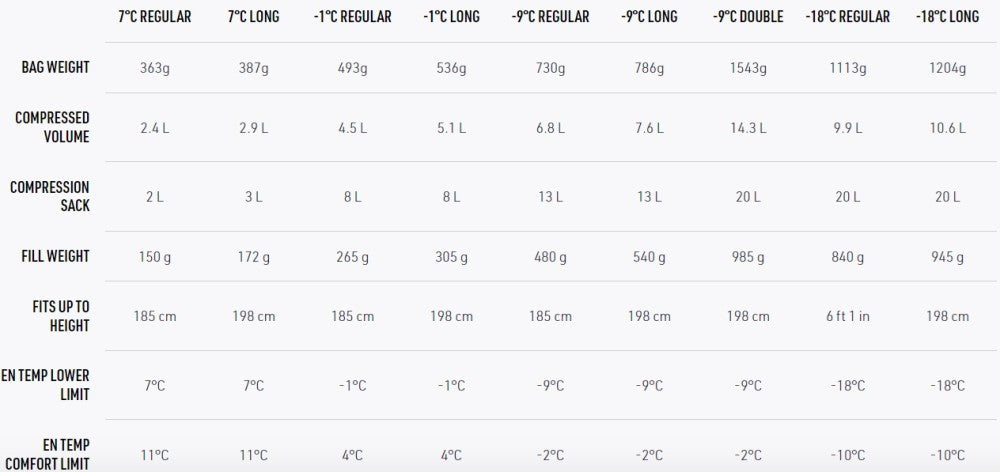 - Spark 7C ir -1C negalima sujungti; Spark -9C ir -18C – suderinami su moteriškais „Sea to Summit“ miegmaišiais.