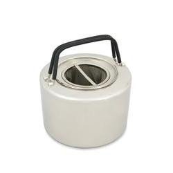 1,0 litro talpos juodojo metalo virdulys; nerūdijantis plienas ir saugus maistui; yra sietelis.